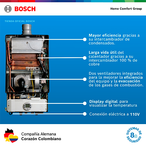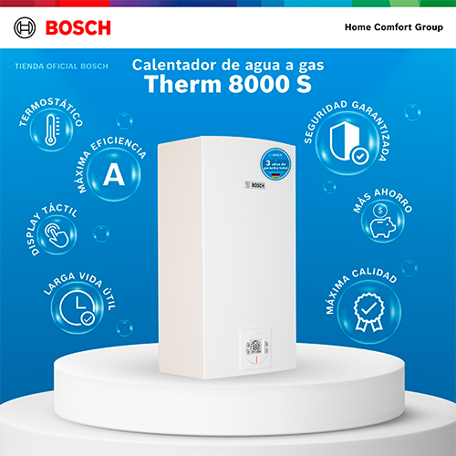 El calentador Therm 8000 S de Bosch es la solución más eficiente y rentable para su negocio, optimiza el gasto de combustible gracias a sus dos ventiladores y su tecnología de condensación*.